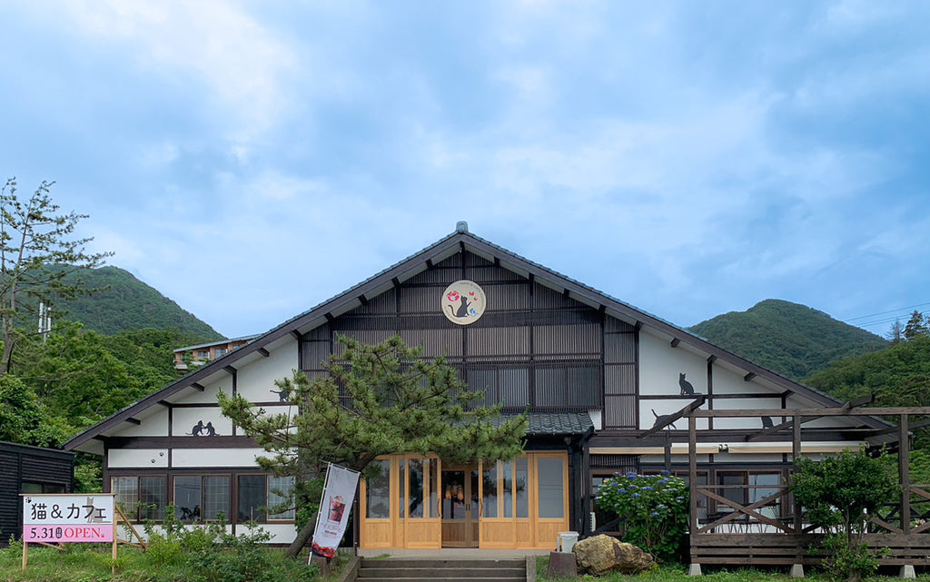 田ノ浦海岸、高台にある海華亭かわい眼下の宿泊施設「喜左エ門」が、「猫アンドカフェ喜左エ門」としてリニューアルOPENしました!