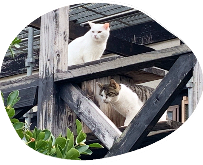 カフェ内には猫はいませんが、建物の周りに10匹前後の猫ちゃんたちがいます。